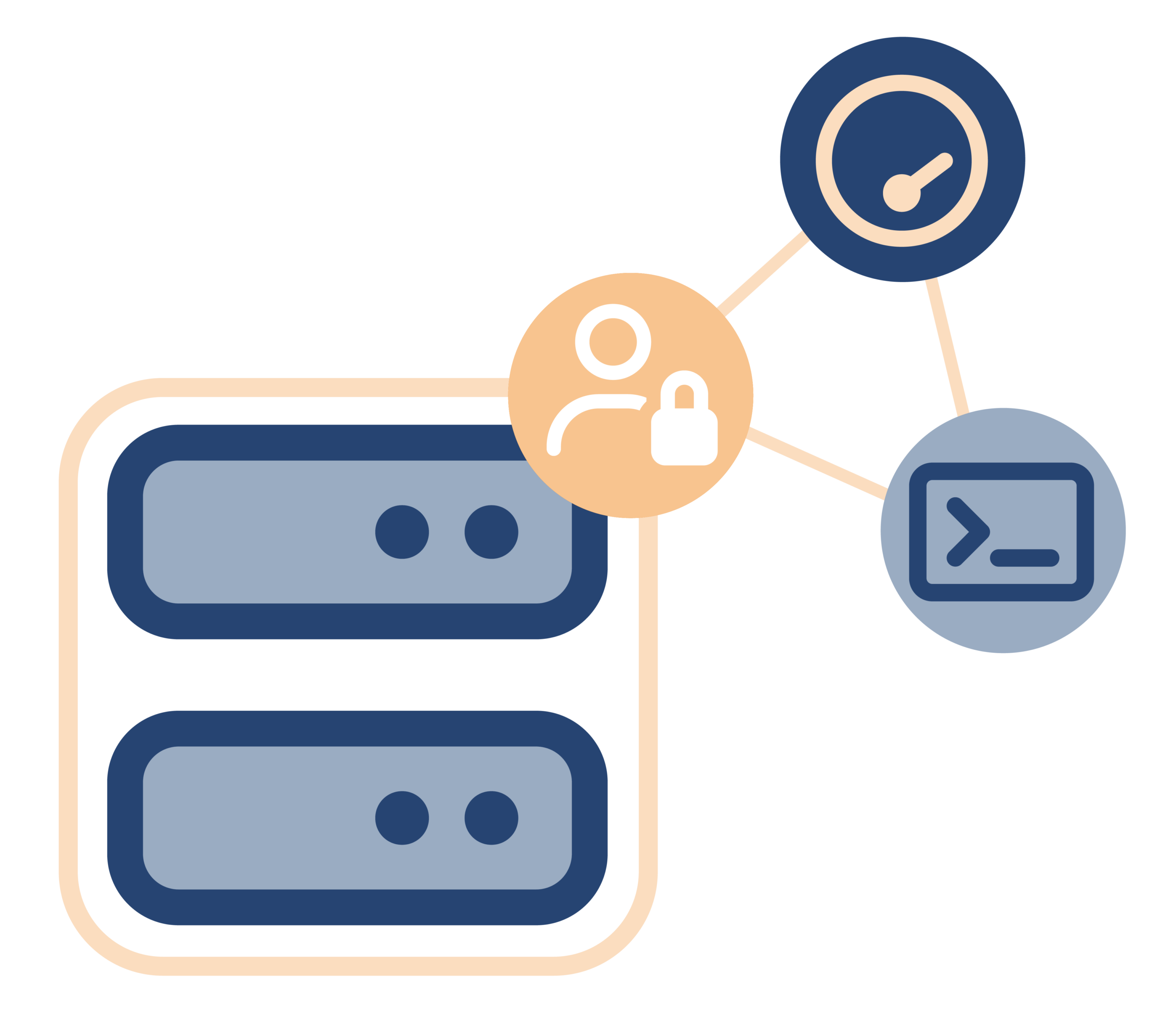 Mehrere verbundene Server, die gemeinsam arbeiten. Lastverteilung, hohe Verfügbarkeit und Ausfallsicherheit – andere Server springen bei einem Ausfall ein.